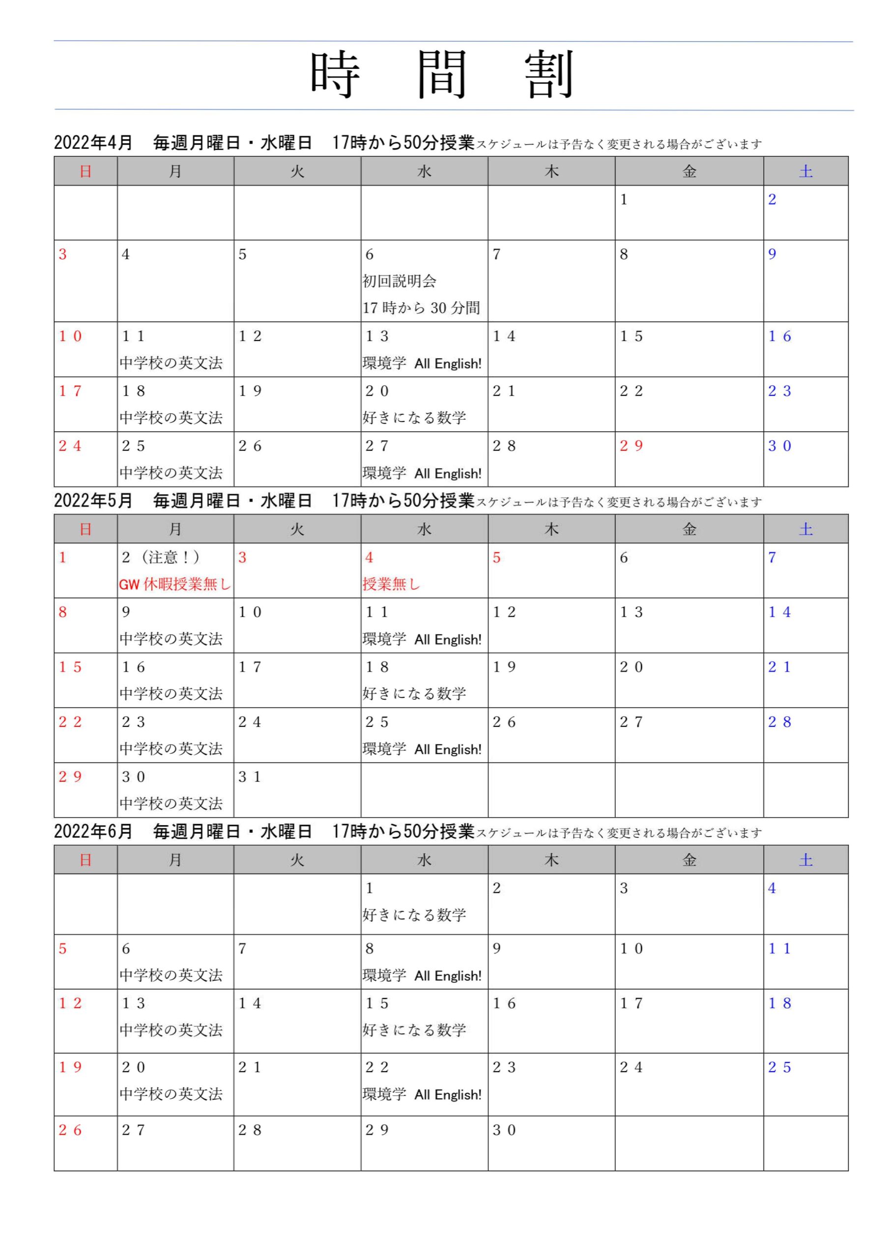 2022年4月~6月(春学期)受講生向けLIVE授業
