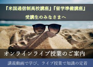 「アメリカ通信制高校」「留学準備講座」を受講している方々も、ぜひライブ授業にご参加下さい。