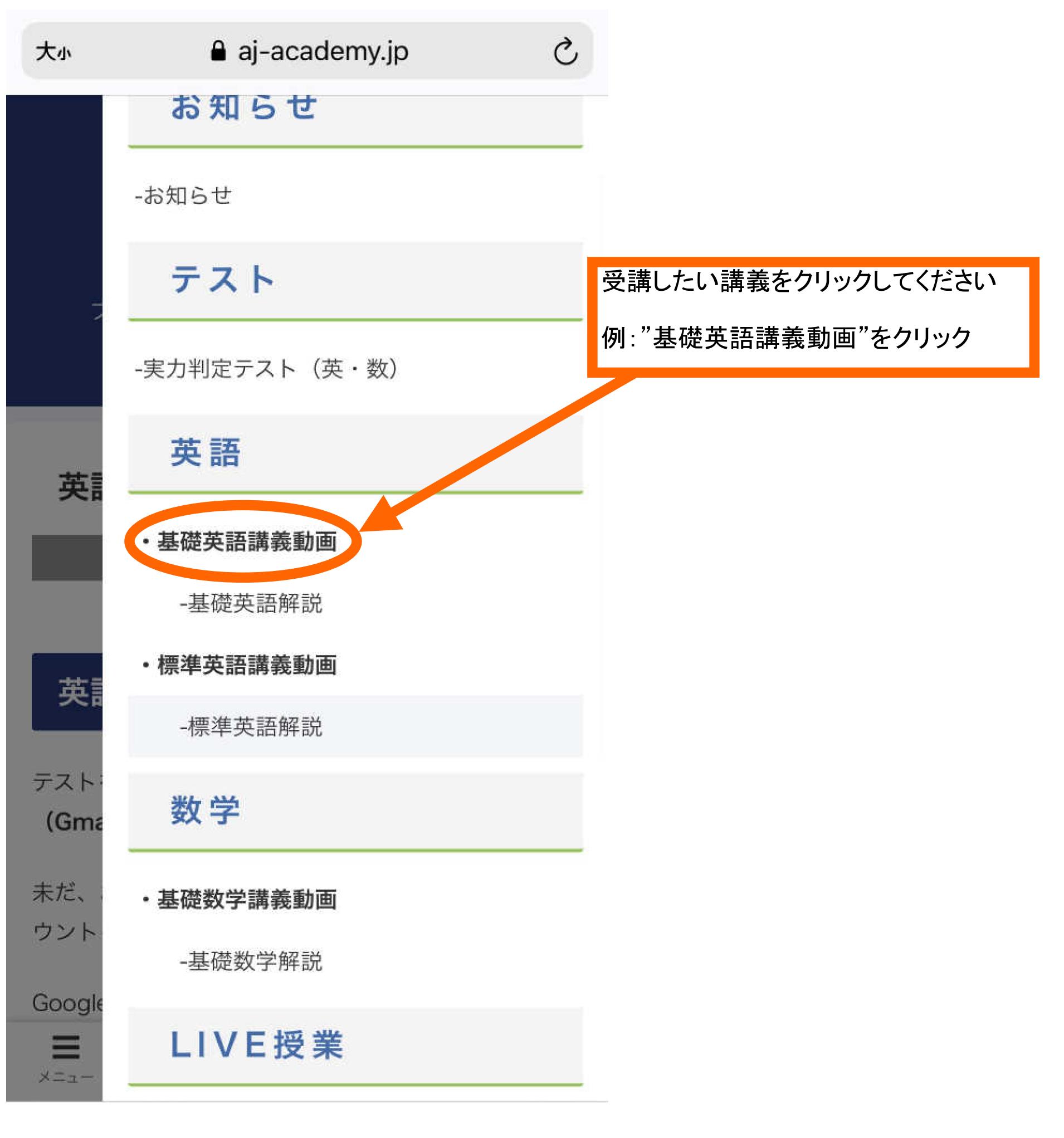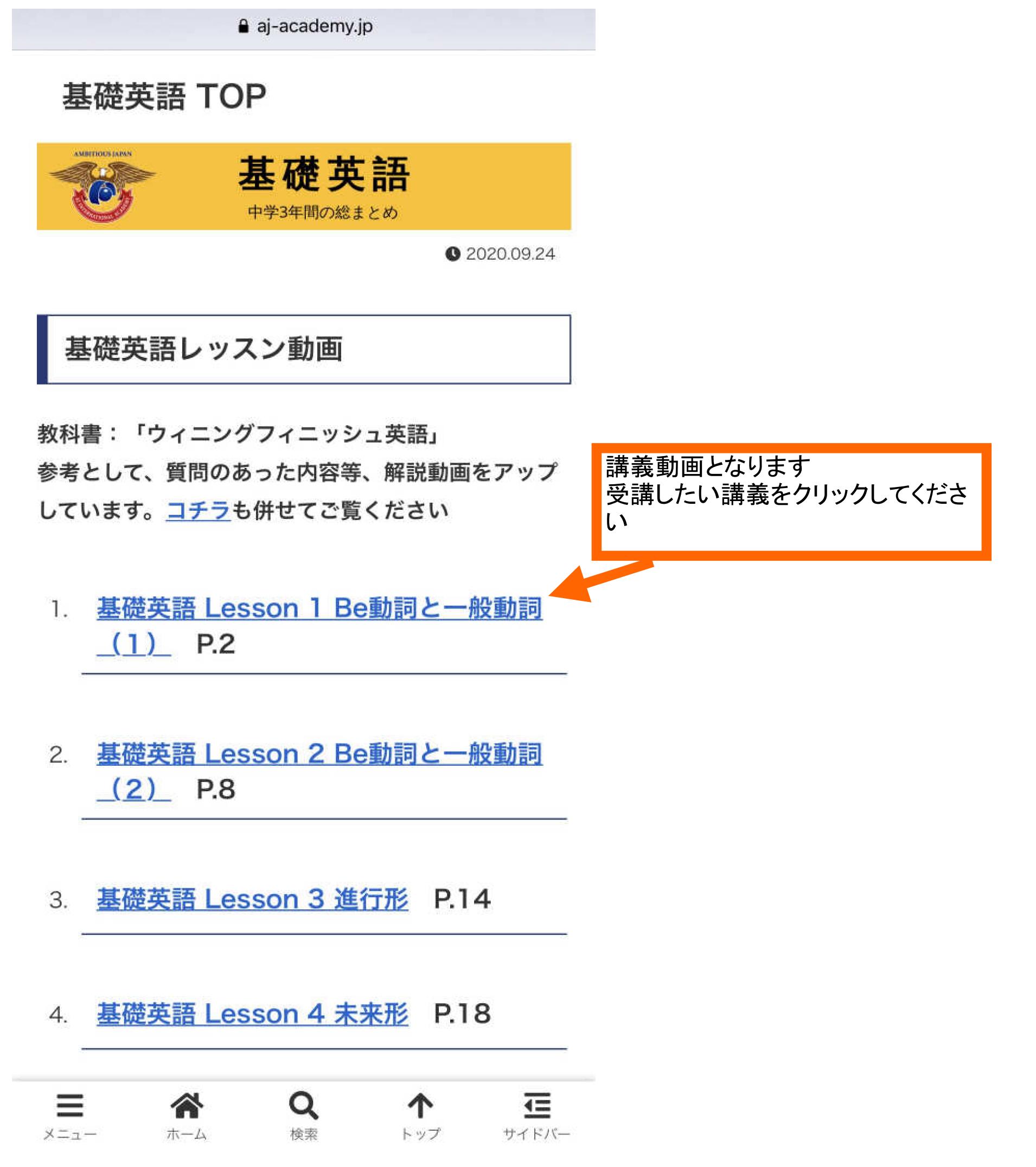 パソコンからでもスマホからでも、テストと同様に、メニュー欄に授業が追加されていきます