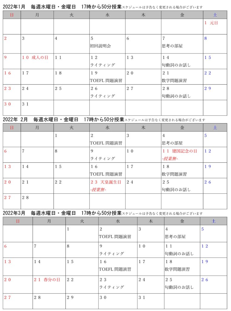 2022年1月~3月(冬学期)受講生向けLIVE授業